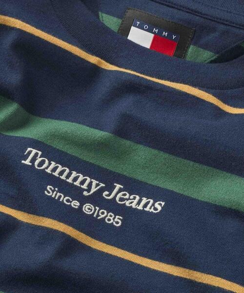 Camiseta Manga Larga Tommy Regular Fit Azul Marino Confeccionada en Puro Algodón con Diseño Integral de Rayas Horizontales. Cuello Redondo. Cuello y Puños de Punto Elástico. Logo de Tommy Jeans en el Pecho. Detalles Distintivos de Tommy Jeans.