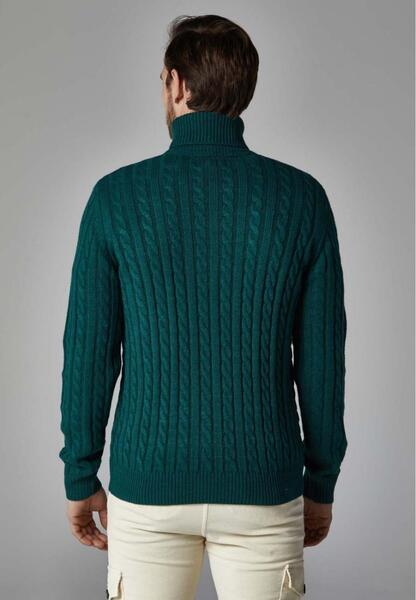Jersey Cuello Cisne Altonadock Slim Fit Verde Confeccionado en Suave Punto Trenzado Mezcla de Algodón con Lana. Manga Larga. Cuello, Puños y Bajo Acanalados. Logo de Altonadock en el Bajo.