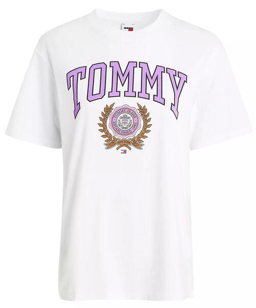 Camiseta Tommy Varsity Sport Relaxed Fit Blanca Confeccionada en Puro Algodón con Estampado Frontal de Estilo Universitario. Cuello Redondo. Manga Corta. Patronaje Amplio y Holgado, Ligeramente Caido de Hombros (Relaxed).