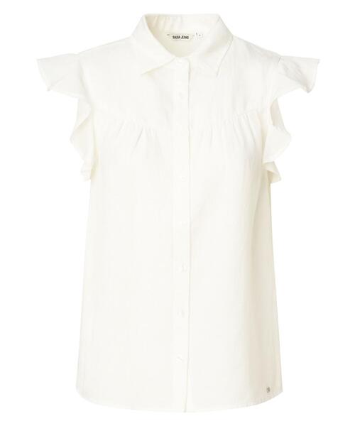 Blusa Salsa Regular Fit Blanca Confeccionada en Suave Mezcla de Lyocell y Lino con Volantes en las Mangas. Cuello Camisero. Cierre de Botones Frontal. Canesú Fruncido. Bajo con Corte Ondulado. Esta Blusa está Fabricada con TENCEL™ Lyocell, una Fibra Suave que se Obtiene de Madera de Origen Sostenible, que da un Acabado a la Prenda Suave, de Tacto Agradable, con muy Buena Transpiración y Propiedades Antibacterianas. TENCEL™ es una Marca Registrada de Lenzing AG.