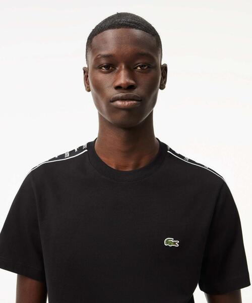 CAMISETA LACOSTE REGULAR FIT NEGRA CON CINTA DEPORTIVA