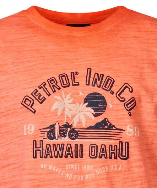 Camiseta Petrol Industries Artwork Azure Regular Fit Naranja Fluor Confeccionada en Puro Algodón Vigoré con Estampado Frontal. Cuello Redondo. Manga Corta. Los Tejidos de Algodón BCI Aseguran un Uso Responsable del Algodón: Una Producción Mejor para las Personas que lo Producen, Mejor para el Medio Ambiente en el que Crece y Mejor para el Mundo.