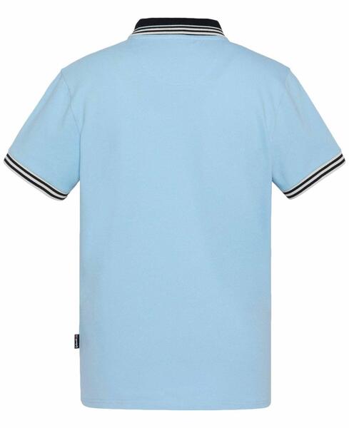 Polo Schott NYC® Arthur Slim Fit Confeccionado en Suave Piqué Elástico Celeste con Cuello y Puños Contrastados y Ribeteados. Tapeta con 2 Botones. Puños y Cuello Acanalados. Logotipo Schott NYC® Bordado en el Pecho. Bajo con Aberturas Laterales de 5 cm.