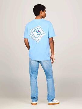 Camiseta Tommy Fun Novelty Regular Fit Azul Celeste Confeccionada en Puro Algodón con Logo Pizza Estampado en el Pecho y en la Espalda con Efecto Oversize. Cuello Redondo. Manga Corta. Este Producto Contiene Algodón Orgánico, con Certificado Independiente que Ayuda a los Agricultores a Pasarse a la Agricultura Orgánica Durante un Periodo de Tres años. El Algodón Crece sin Pesticidas Químicos, Fertilizantes Químicos ni Semillas Genéticamente Modificadas.