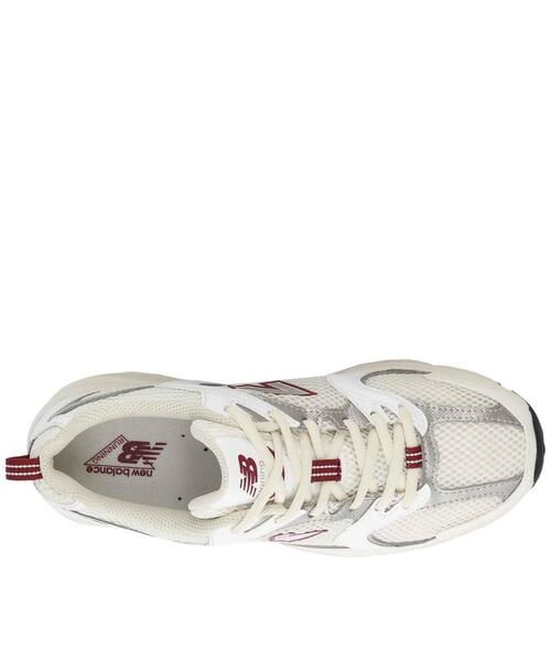 Zapatillas New Balance MR530 SZ Confeccionadas en Material Sintético Blanco y Granate, Combinado con Malla Textil Beige y Apliques Plateados. Diseño Inspirado en las Zapatillas de Running Clásicas. Cierre con Cordones para un Ajuste Seguro. El Empeine Sintético Proporciona una Sensación y un Ajuste más Cómodo. La Entresuela ABZORB Absorbe los Impactos mediante una Combinación de Amortiguación y Resistencia a la Compresión, Aportando una Comodidad Superior en cada Zancada. Dale un Toque Retro a tu Look con las Zapatillas MR530. Altura Máxima de la Suela 4 cm. Altura Total 12 cm.