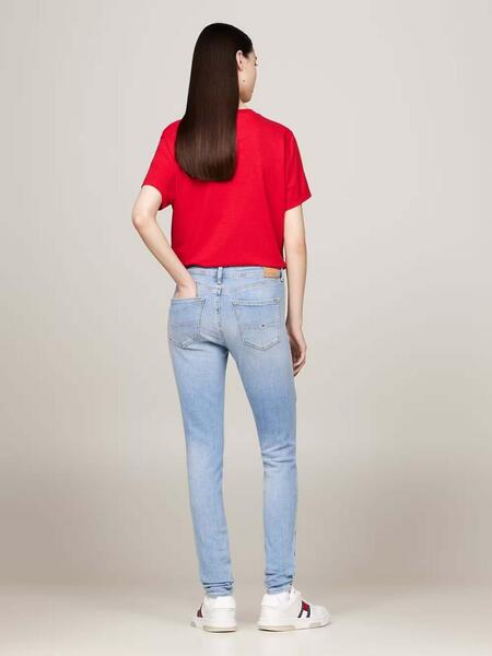 Pantalón Vaquero Tommy Nora Skinny Fit CH0214 Confeccionado en Suave Denim Elástico Azul Degradé con Cierre de Cremallera. Tiro Medio. Estilo 5 Bolsillos. Corte Ceñido. Pierna Estrecha (Skinny). Logo Bordado de Tommy Jeans en el Bolso Trasero y en la Parte Superior del Bolso Monedero. Peso del Tejido 11 Oz (312 gr). Este Producto Contiene Algodón Reciclado con Certificado Independiente, Procedente de Tejidos Usados y Restos de Fábrica para Reducir el Impacto Medioambiental.