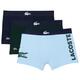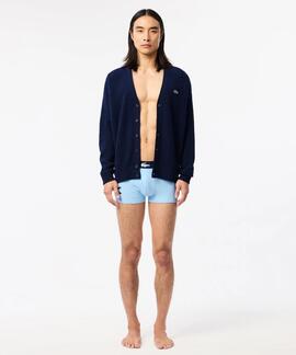 Bóxers Lacoste 3 Pack Trunk Confeccionados en Suave y Cómodo Algodón Elástico que Aporta Transpirabilidad y Libertad de Movimientos. Su Cintura Elástica con Marca Lacoste le da un Toque Exclusivo a esta Prenda. Pack de Tres Bóxers, Dos Lisos en Color Verde y Azul Marino, y el Otro en Color Celeste con Estampado Lateral de la Marca. Todos con las Cinturillas Contrastadas en Color Azul Marino.