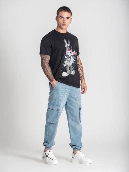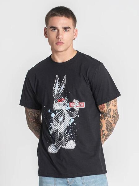Camiseta Gianni Kavanagh Bunny Regular Fit Negra Confeccionada en Puro Algodón con Estampado Frontal. Cuello Redondo. Manga Corta. Bajo Recto. La Talla del Modelo es M (Alto en cm: 178 cm; Peso en Kg: 75 kg). Sé el más Guay del Lugar. Agarra esta Camiseta y Haz que este Momento Dure para Siempre.