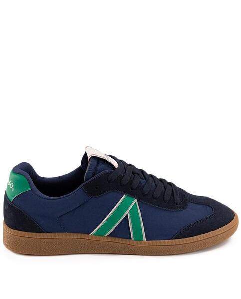 Zapatilla Walking Setentera El Ganso Confeccionada en Suave Nailon Azul Marino Combinado con Ante Azul Marino y Apliques de Piel Verde y Blanco. Lleva Suela de Goma Vulcanizada Color Caramelo. Tiene Nuestra Clásica Cinta en V Invertida. Puntera de Ante a Tono y Talonera de Piel con el Logo de El Ganso. Altura Máxima de la Suela 3 cm. Altura Total 11 cm.