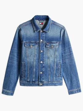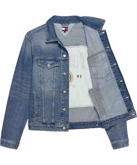 Cazadora Vaquera Tommy Ryan Regular Fit Confeccionada en Suave Denim Elástico Azul Degradé con Cierre de Botones Frontal. Cuello Ingles. Bolsos en el Pecho con Solapas y Cierre de Botón. Detalles Distintivos de Tommy Jeans. Escudo de Tommy Jeans Bordado en la Espalda con Diseño Color Block. Bolsos Laterales Abiertos. Peso del Tejido 13,70 Oz (388 gr). Esta Chaqueta Vaquera Trucker Destaca por su Llamativo Panel Trasero, que Luce un Escudo de Tommy Jeans Bordado.