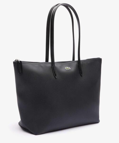 Bolso Tote Lacoste Confeccionado en Suave Ecopiel Negra con Cierre de Cremallera. Asas Largas Puntiagudas en los Extremos, en un Sutil Guiño a los Tees de Golf. Bolsillo Interior con Cremallera. Llavero en el Interior. Tirador de Cremallera Lacoste. Cocodrilo Clásico Bordado en la Parte Delantera. Este Bolso Grande y Ligero con Cremallera es lo Suficientemente Grande para Guardar un Portátil de 15'. La Estrella de la Colección L.12.12 Concept, con un Efecto Piqué en Relieve Inspirado en la Icónica Camisa Polo Lacoste de 1933. Dimensiones: L 13,8 × Al 11,8 × F 5,5” / L 35 × Al 30 × F 14 cm