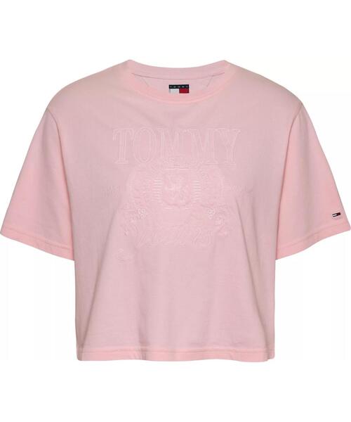 Camiseta Tommy Jeans Relaxed Fit Cropped Rosa Confeccionada en Puro Algodón con Bordado Frontal a Tono. Manga Corta. Logo de Tommy Jeans Bordado en la Manga. Patronaje Amplio y Holgado, Ligeramente Caido de Hombros (Relaxed) y Recortada (Cropped). TALLA AMPLIO SE ACONSEJA UNA TALLA MENOR DE LO HABITUAL. El Algodón Sostenible Minimiza el Uso de Sustancias Químicas Nocivas, Mejora la Calidad del Suelo y Previene la Contaminación para Ayudar a Proteger la Salud de los Agricultores y la Fauna Local.