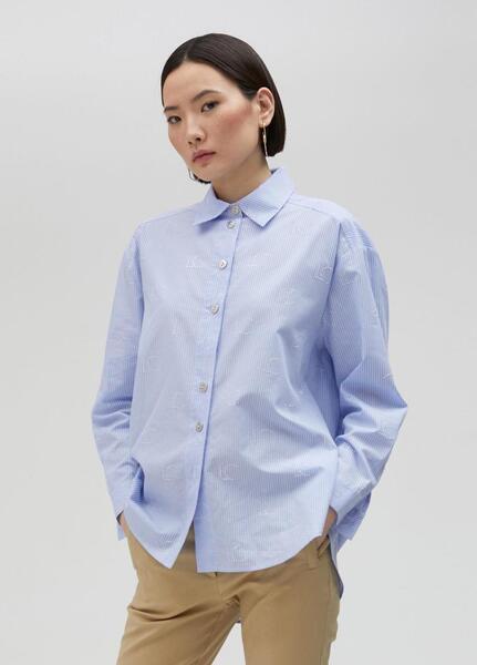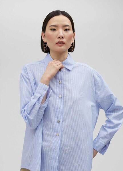 Camisa Lola Casademunt Relaxed Fit Confeccionada en Puro Algodón con Estampado de Rayas Azules y Blancas. Cierre Frontal Abotonado Oculto con Tapeta. Botones Dorados Personalizados. Logotipo Integral Realizado con Strass. Manga Larga Terminada en Puño Simple Abotonado. Bajo con Corte Ondulado. Patronaje Amplio y Holgado, Ligeramente Caido de Hombros (Relaxed). TALLA AMPLIO SE ACONSEJA UNA TALLA MENOR DE LO HABITUAL.