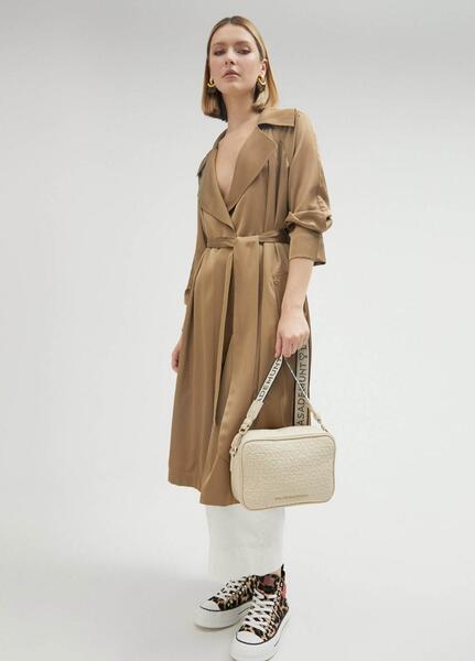 Bolso Bandolera Lola Casademunt Confeccionado en Suave Ecopiel Color Crudo con Monograma Integral Grabado a Tono. Cierre Superior con Cremallera. Bolsillo Interior con Cremallera. Correa para Bandolera con Inscripción de la Marca, Ajustable y Extraible de 126 cm aprox. Forro Interior en Suave Poliéster a Tono. Medidas: 25cm x 17cm x 8cm.