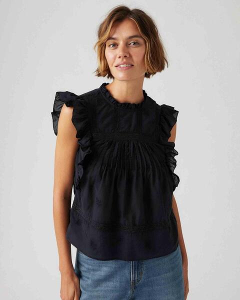 Blusa Levi's® Edith Regular Fit Negra Confeccionada en Suave Mezcla de Viscosa y Algodón con Volantes en las Mangas. Esta Blusa Romántica y Elegante es Ideal para Combinar con tus Pantalones más Holgados, nuestra Blusa Edith Presenta un Escote Alto, Mangas con Vuelo, un Corte Fluido y detalles Bordados Florales a Tono. Este Artículo ha sido Fabricado con Fibras de Viscosa LENZING™ ECOVERO™ Producidas a Partir de Celulosa de Madera Sostenible Certificada de Fuentes Controladas. Este Proceso Garantiza Hasta un 50% Menos de Emisiones e Impacto en el Agua que los Procesos Convencionales. LENZING™ y ECOVERO™ son Marcas Comerciales de Lenzing AG.