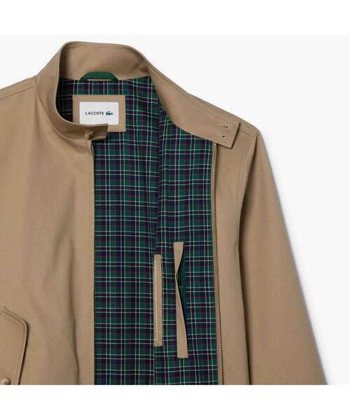 Chaqueta Harrington Lacoste Regular Fit Confeccionada en Suave Sarga Elástica e Hidrófuga Camel con Cierre de Cremallera Frontal. Cuello Alto con Protector. Bolsos Laterales con Solapas y Cierre de Botón. Forro Interior Realizado en 100% Algodón con Estampado en Cuadros Verdes. Bolsillo Interior con Cremallera. Cocodrilo Clásico Bordado en el Pecho. Ojales en las Sisas para Favorecer la Ventilación. Bajo en Punto Elástico Acanalado. Esta Chaqueta Harrington presenta un Diseño Práctico y con Estilo. Una Prenda Versátil que Podrás llevar con Looks Formales e Informales.