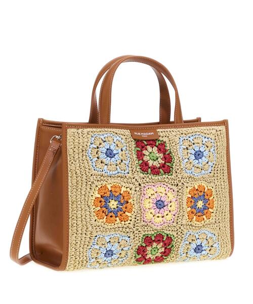 Bolso Rue Madam Paris Carioca Tote Confeccionado en Suave Ecopiel Camel Combinada con Paneles de Rafia Crochet Multicolor Frontal. Tab de Ecopiel con Inscripción de la Marca. Cierre Superior con Botón Magnético. Dos Asas de Ecopiel Camel de 40 cm. Forro Interior en Suave Algodón. Correa de 110/130 cm para Llevarlo como Bandolera en el mismo Material. Un Compartimento Interior con Bolsillo con Cierre de Cremallera en un Lateral y dos Bolsillos Abiertos en el Lateral Opuesto. Medidas 35 cm X 27 cm X 14,5 cm.