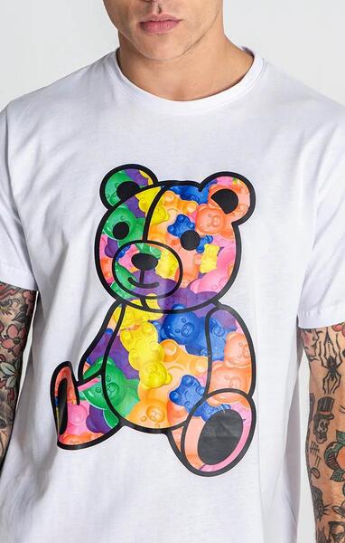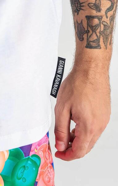 Camiseta Gianni Kavanagh Gummy Regular Fit Blanca Confeccionada en Puro Algodón con Estampado Frontal. Cuello Redondo. Manga Corta. Bajo Recto. Etiqueta de Gianni Kavanagh Cosido en el Bajo Lateral Izquierdo. La Talla del Modelo es M (Alto en cm: 178 cm; Peso en Kg: 75 kg). Sé el más Guay del Lugar. Agarra esta Camiseta y Haz que este Momento Dure para Siempre.