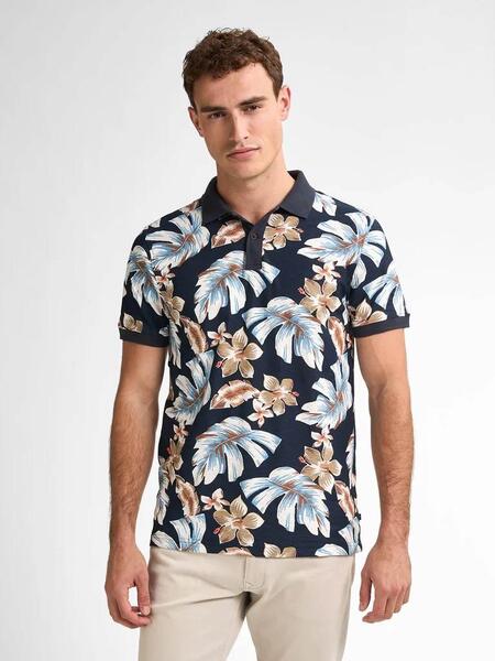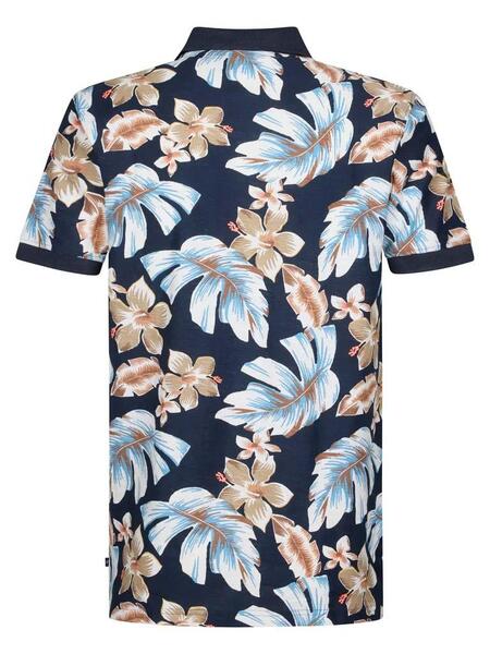 Polo Manga Corta Petrol Industries Blueview Regular Fit Azul Marino con Estampado Tropical