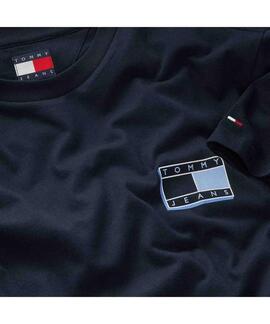 Camiseta Tommy Jeans Pop Color Flag Slim Fit Azul Marino Confeccionada en Puro Algodón con Bandera de Tommy Jeans con Estampada en el Pecho Multicolor. Parche con Logo de Tommy Jeans Bordado en la Manga. Cuello Redondo. Manga Corta. Esta Camiseta está Confeccionada con Algodón Regenerativo, Salvo los Adornos. El Algodón se Cultiva con Métodos que Tratan de Mejorar la Salud del Suelo, las Cuencas y la Biodiversidad.