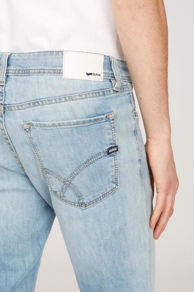 Pantalón Vaquero Gas Albert Slim Fit WK15 Confeccionado en Denim Elástico Azul Degradé con Cierre de Cremallera. Estilo 5 Bolsillos. Tiro Medio. Pierna Estrecha (Slim). Peso del Tejido 11 Oz (311,85 gr). Este Modelo se Distingue por un Corte Limpio que se adapta a Diferentes Tipos de Cuerpos.