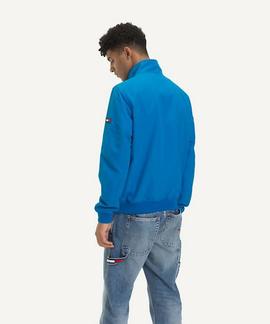 Cazadora Bomber Tommy TJM Essential Regular Fit Azul Confeccionada en Otomán de Nailon con Cuello Alto y Cierre de Cremallera. Logo Bordado en el Pecho. Parche en Relieve de Tommy Jeans Bordado en la Manga Izquierda. Bolsos Laterales con Cierre de Botón de Presión. Forro Interior de Suave Poliéster de Rejilla. Puños y Bajo Elásticos.