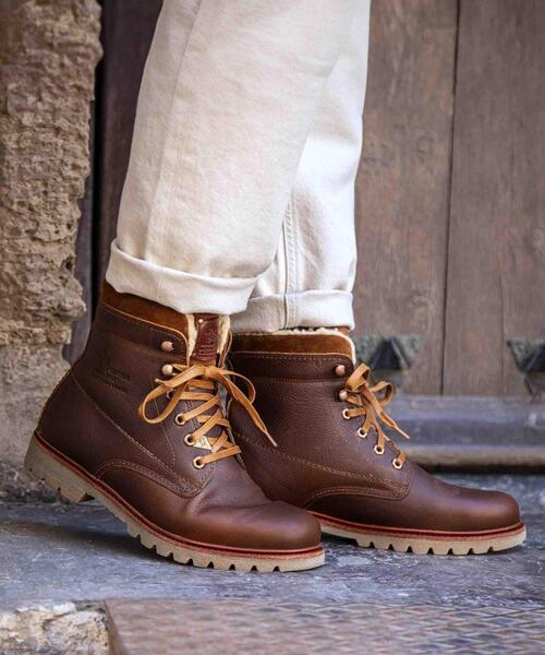 Bota Panama Jack P03 Aviator C22, realizada en suave piel napa grass bark color cuero con forro interior de algodón 100% (borreguito). Bota de hombre estilo aviador con cierre de cordones, realizada en piel napa WATERPROOF que repele el agua. Plantilla anatómica, extraíble para un mejor calce e higiene. Suela de goma, flexible, resistente y adherente. Altura de la caña: 16 cm. Altura del tacón: 4 cm. Peso de las botas: 869 g x 2 = 1.738 g. Descubre la calidad, el confort y el estilo auténtico de Panama Jack: tu mejor aliado para un invierno cálido, elegante y único. 100% Hecho en España.
