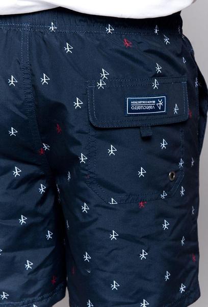 Bañador Valecuatro H Logos Azul Marino con Print en Rojo y Blanco. Secado Rápido, con Malla Interior. Interior con Cinturilla al Contraste. Cordones Personalizados y Ojal en el Bolsillo Trasero que Facilita el Secado.