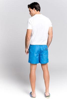 Bañador Valecuatro H Logos Azul con Print en Azul Marino y Blanco. Secado Rápido, con Malla Interior. Interior con Cinturilla al Contraste. Cordones Personalizados y Ojal en el Bolsillo Trasero que Facilita el Secado.
