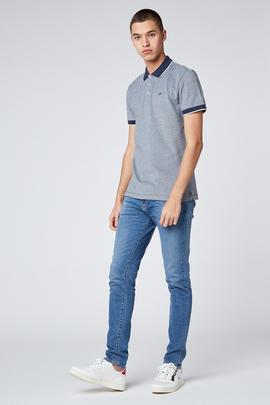Polo Gas Esus Piquet Stretch Oxford Azul Marino Jaspeado con Cuello y Puños al Contraste.