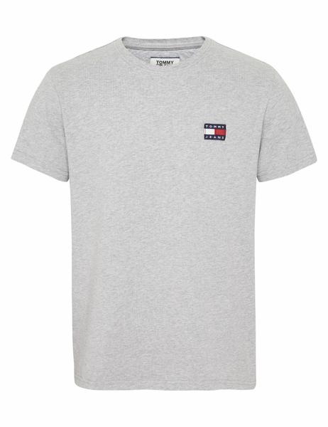 Camiseta Tommy TJM Badge Tee Regular Fit Gris con Logo Bordado en Relieve.