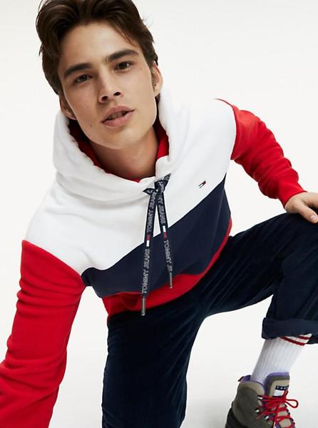 Forro Polar Tommy TJM Bold Stripe Hood Multicolor con Capucha.
