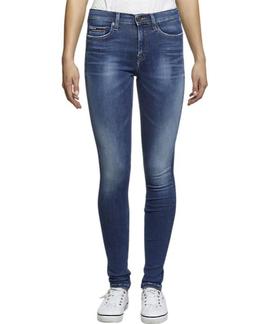 Pantalón Vaquero Tommy Nora Mid Rise Skinny Fit ONMBS en Denim Elástico Azul Degradé con Cierre de Cremallera.