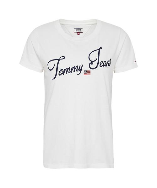 Camiseta Tommy TJW Vintage Script Tee Blanca con Logo Bordado Frontal.