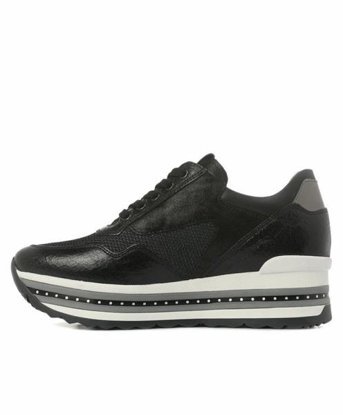 Sneakers NeroGiardini P908911D 100 de Piel Negra con Apliques Plateados y Malla Textil Metalizada. Cierre Lateral de Cremallera. Forro Interior de Piel. Altura de Suela en el Talón 5 cm. Sistema de Control Climático con Elastopan® (BASF). SE RECOMIENDA ESCOGER UNA TALLA MENOR A LA HABITUAL.