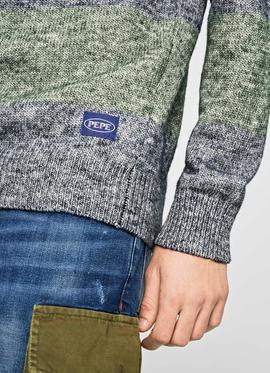 Jersey Pepe Jeans Teo Regular Fit de Rayas Azul Marino y Verde Jaspeadas.