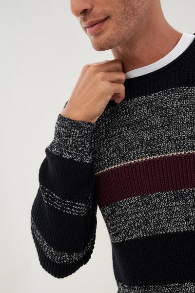 Jersey Salsa Regular Fit de Punto Negro con Rallas Negras Jaspeadas y Granate.
