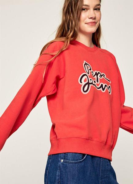 Sudadera Pepe Jeans Bonny Oversized Fit Roja con Bordado Frontal Bicolor de Cadeneta.
