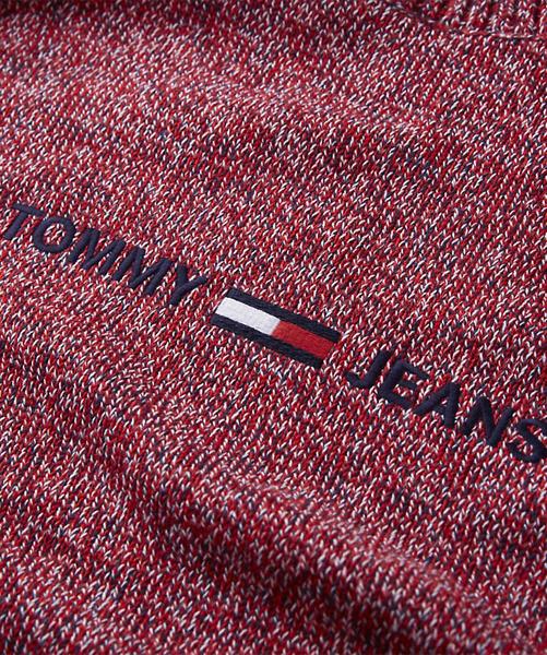 Jersey Tommy TJM Melange Sweater Regular Fit de Punto Jaspeado en Rojo Coral, Azul Marino y Blanco. Logo Bordado en el Pecho. Puños, Bajos y Cuello Acanalado. Cuello con Ribete en Azul Marino.