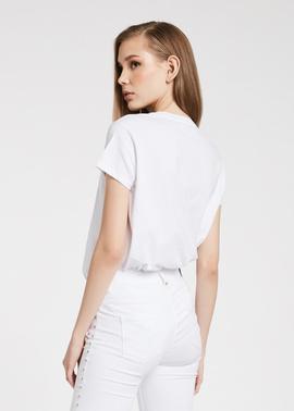 Camiseta Gaudí Oversize Fit Blanca con Estampado de Corazón con Apliques de Tachuelas Plata e Impresión de Letras Crazy Feeling.