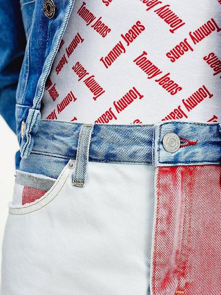 Falda Vaquera Tommy Short Denim Skirt en Denim Azul de Estilo Vintage con Frontal en Color Block Degradé. Cierre de Cremallera. Corte 5 Bolsillos. Logo Bordado en Relieve en la Parte Posterior.