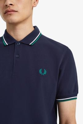 Polo Fred Perry M3600 Twin Tipped Shirt Regular Fit Confeccionado en Suave Piqué Azul Marino con Doble Ribete Blanco y Verde en Cuello y Puños. Logo Corona de Laurel Verde Bordado en el Pecho. Cuello y Puños Acanalados. Tapeta con Dos Botones. La Camisa Fred Perry con Ribete Doble, es una Adaptación Contemporánea del Famoso Corte Aerodinámico de Fred con Proporciones Ligeramente más Estrechas que el M12 Original. Disponible en una Amplia Gama de Colores, Cada uno con su Propia Historia Única.