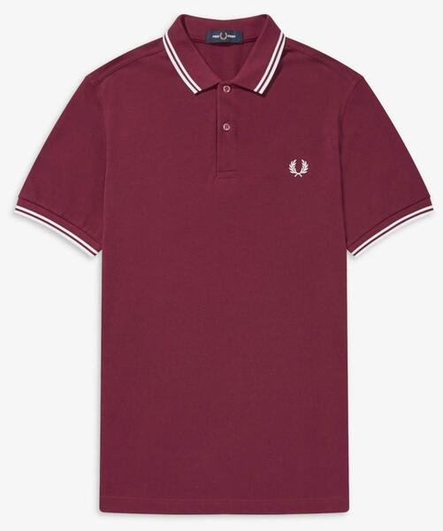 Polo Fred Perry M3600 Twin Tipped Shirt Regular Fit Confeccionado en Suave Piqué Granate con Doble Ribete Blanco en Cuello y Puños. Logo Corona de Laurel Blanco Bordado en el Pecho. Cuello y Puños Acanalados. Tapeta con Dos Botones. La Camisa Fred Perry con Ribete Doble, es una Adaptación Contemporánea del Famoso Corte Aerodinámico de Fred con Proporciones Ligeramente más Estrechas que el M12 Original. Disponible en una Amplia Gama de Colores, Cada uno con su Propia Historia Única.