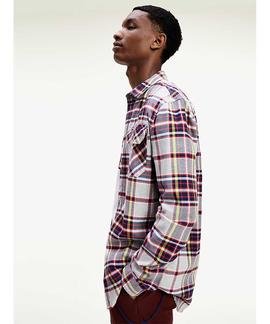 Camisa Tommy TJM Flannel Plaid Regular Fit Gris en Género de Franela con Estampado de Cuadros. Bolso con Tapeta en el Pecho con Logo. Este Producto Contiene Algodón Orgánico con Certificado Independiente que Garantiza que se ha Cultivado sin Utilizar Pesticidas ni Fertilizantes Químicos, ni Semillas Modificadas Genéticamente.