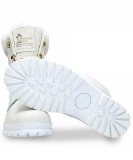 Bota Panama Jack Tuscani B24 realizada en piel Napa White color blanco con forro interior de suave pelo. Bota de mujer plana con cierre de cordones, realizada en piel napa WATERPROOF que repele el agua. Plantilla anatómica forrada de pelo, extraíble para un mejor calce e higiene, que absorbe perfectamente el impacto de la pisada. Suela de caucho natural, flexible, resistente y adherente. Altura de la caña: 17 cm. Altura del tacón: 3,5 cm. Peso de las botas: 723 g x 2 = 1.446 g. Esta bota de nieve con un look après-ski cautivará con su resplandor la atención de las miradas más incondicionales. Descubre la calidad y el confort para un invierno más cálido y único. Sostenibilidad: Producción local de cercanía. Piel sostenible certificada por Leather Working Group®. Durabilidad, calidad y atemporalidad. Embalaje de cartón reciclado y reciclable. Hecho 100% en España.