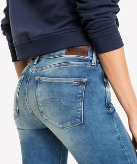 Pantalón Vaquero Tommy Nora Mid Rise Skinny Fit flblst en Denim Azul con Cierre de Cremallera.