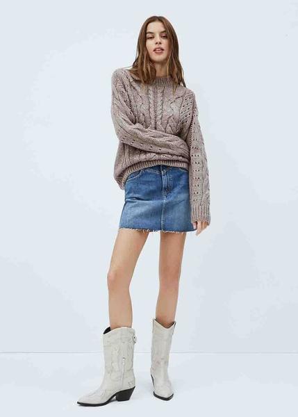 Jersey Pepe Jeans Kamila Regular Fit Tostado Confeccionado con Mezcla de Tejidos con Calados y Coletas. Cuello Redondo. Manga Larga. Terminaciones en Canalé.