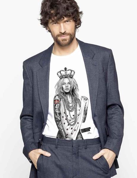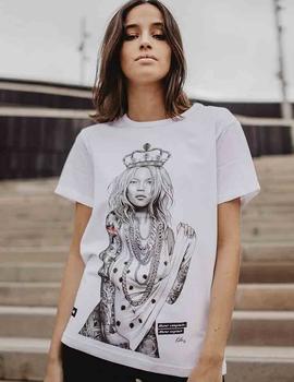 Camiseta Unisex Be Happiness Kate Moss Regular Fit Blanca Confeccionada en Algodón 100% con Serigrafía al Agua en Cuatricomía Delantera y Posterior. Manga Corta con Dobladillo. Cuello Redondo. Peso del Tejido 6 Oz (170 g).