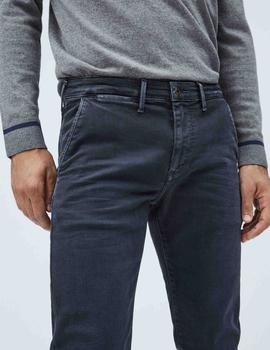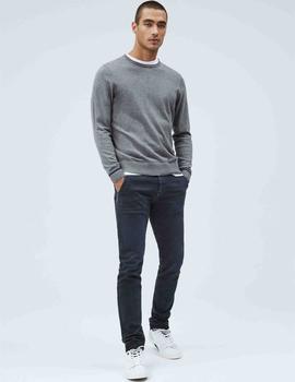 Pantalón Bolso Chino Pepe Jeans James Slim Fit Gris Oscuro Confeccionado en Denim Elástico Degradé con Cierre de Cremallera. Tiro Bajo. Pierna Ajustada. Bosillos Laterales Angulados. Bolsos Traseros sin Botón. Bolso Monedero Oculto.