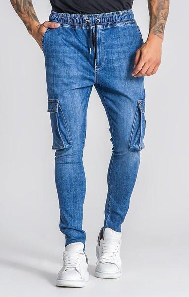 Pantalón Vaquero Gianni Kavanagh Skinny Fit con Bolso Cargo Confeccionados en Denim Elástico Azul Degradé con Cierre de Cremallera. Cintura Elástica con Cordón Regulable. Tiro Medio con Entrepierna Caida. Bolsos Laterales Angulados. Etiqueta de Piel Sintética Negra GK en la Parte Delantera y Negra con Inscripción Plateada en el Bolso Cargo Izquierdo. Un Ajuste Elástico, Confeccionado en un Denim Suave con Efecto Lavado.